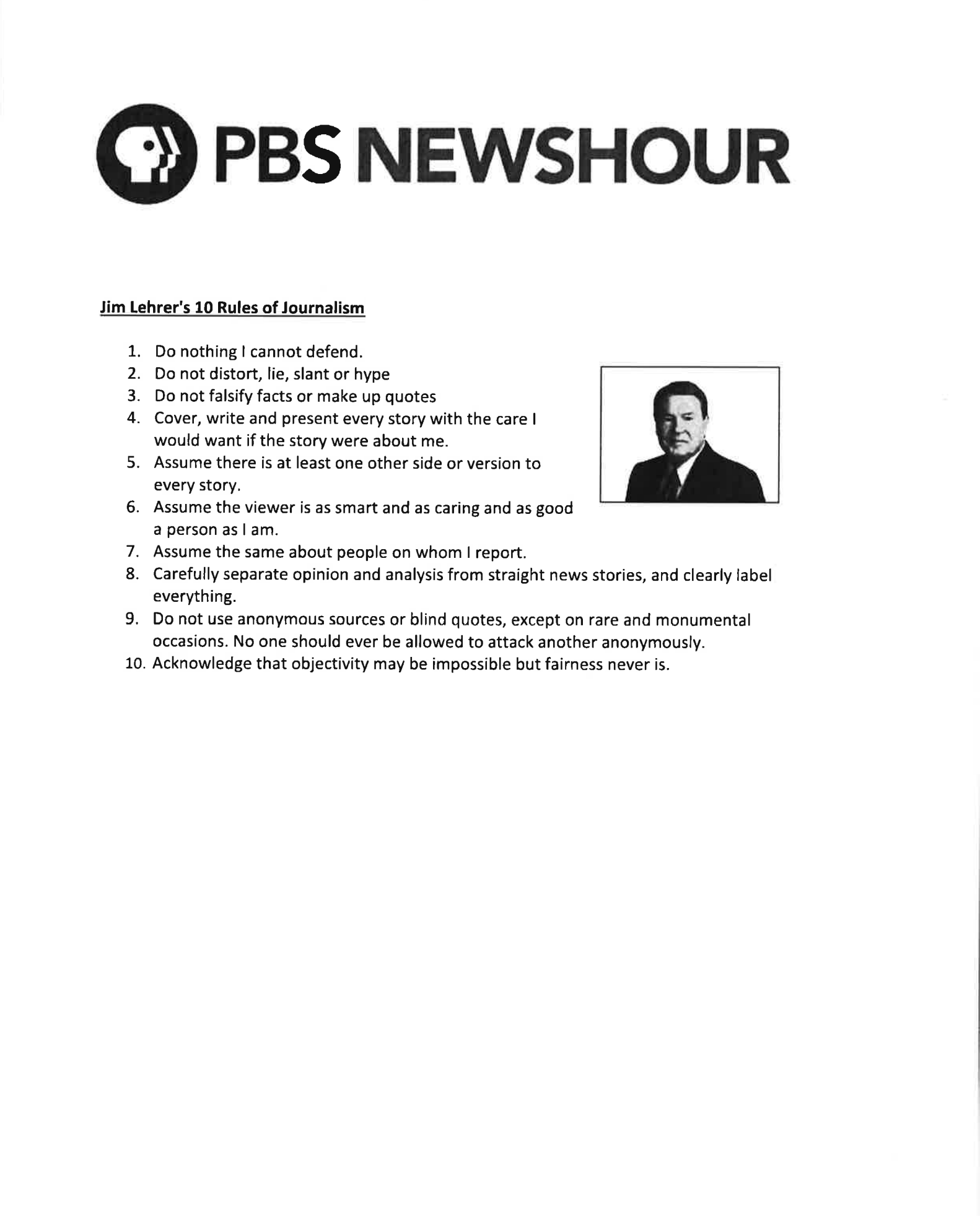 Jim Lehrer’s Rules of Journalism (guide to life as a whole).